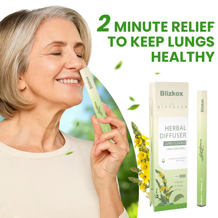 Blizkox™ Mullein Aroma Diffuser harnesses the power of natural botanicals to detoxify the lungs and relieve respiratory issues such as COPD, asthma, chronic cough, and seasonal breathing problems. Its herbal formula works by clearing mucus, easing inflammation, and promoting the regeneration of lung tissue—making breathing smoother and deeper.